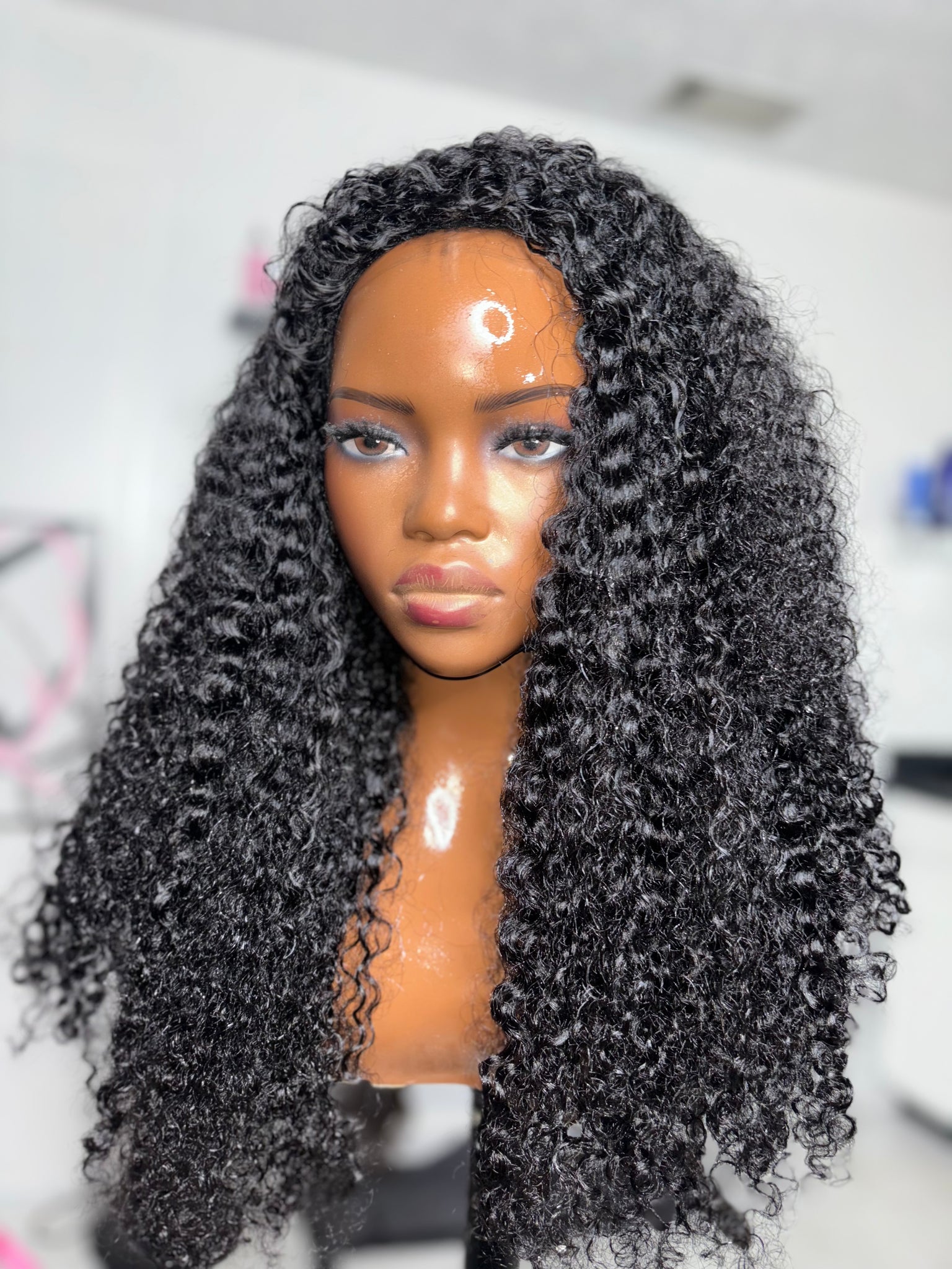 Our no lace, flipover half wig comes with an elastic band and adjustable straps in the texture and size you select.
